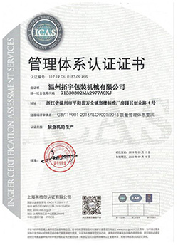 企業(yè)主要產(chǎn)品:多功能全自動(dòng)臥式裝盒機(jī) 食品裝盒機(jī) 藥品裝盒機(jī)。浙江拓宇包裝機(jī)械有限公司將本著“以誠(chéng)信為本,用戶至上、生存靠質(zhì)量、發(fā)展靠創(chuàng)新”的經(jīng)營(yíng)于是念;樹立“用戶需求為已任、客戶利益為初衷”的企業(yè)目標(biāo)。企業(yè)已通過(guò)質(zhì)量管理體系9001認(rèn)證 產(chǎn)品獲得歐盟CE認(rèn)證。歡迎國(guó)內(nèi)外客商蒞臨拓宇實(shí)地考察、洽談和指導(dǎo),拓宇機(jī)械愿與您攜手共創(chuàng)輝煌。